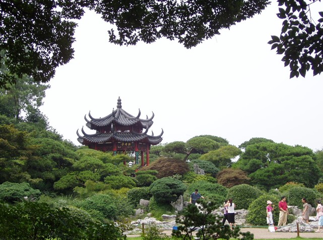 牡丹園西行,山回路轉(zhuǎn)就是密林區(qū),從位置上來講,它們都位于公園的西部。密林區(qū)得用原來的土丘,種植常綠闊葉的叢林,并結(jié)合地形,修建林間小道,環(huán)境寧靜,宜于休息,更是凈慈寺僧侶們每晚散步的最佳去處。 自牡丹亭中眺望,公園東、南、北三面景色盡收眼底。