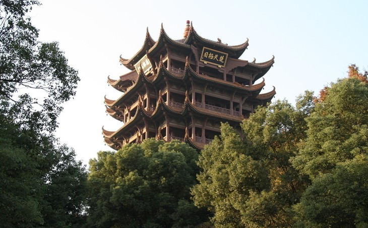黃鶴樓坐落在海拔高度61.7米蛇山頂,以清代“同治樓”為原型設計。樓高5層,總高度51.4米,建筑面積3219平方米。72根圓柱拔地而起,雄渾穩健;60個翹角凌空舒展,恰似黃鶴騰飛。樓的屋面用10多萬塊黃色琉璃瓦覆蓋。在藍天白云的映襯下,黃鶴樓色彩絢麗,雄奇多姿。