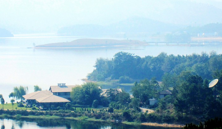 游完了木蘭樓后,沿著林間小道再往前走300米,可進入木蘭湖太陽島國際俱樂部,這是四面環水,是一家歐式、日式建筑相結合的度假村。在這家異國風情的島嶼上,你可以享受騎馬、射箭,攀登空中鐵塔、天然沐浴等活動,如果你覺得累了,也可以在島上品嘗美味佳肴,或住進歐式小別墅休憩,領略人間蓬萊風光。