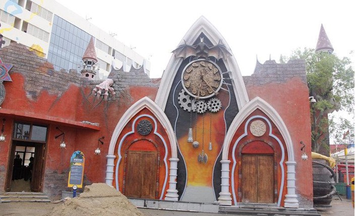 4D影院:屬于武漢歡樂谷颶風灣區,占地面積946平米,局部兩層,高度為24米。