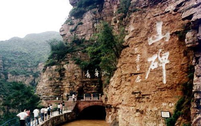 碑就是山,山就是碑。將山碑二字刻在青年洞口的山崖上,教育子孫后代永遠不忘當年修建紅旗渠,改變干旱缺水面貌的艱苦奮斗歷程,激勵他們繼承和發(fā)揮紅旗渠精神。