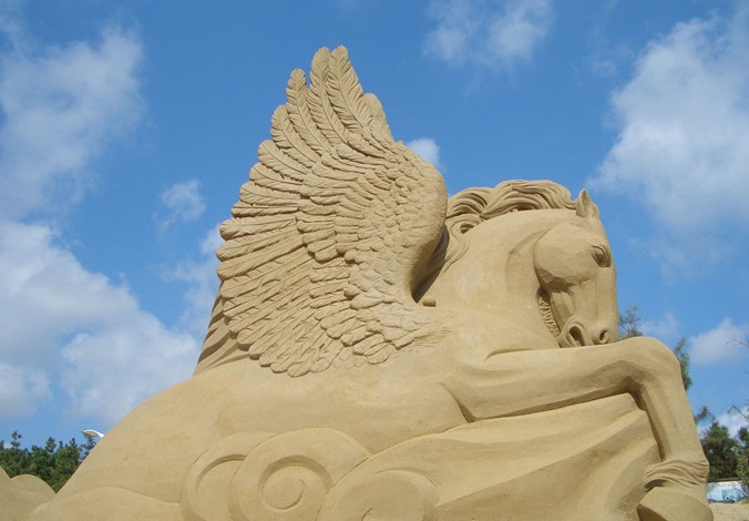 2001年9月,當第三屆中國舟山國際沙雕節以嶄新的面貌展現在人們眼前時,大家無不驚嘆人類藝術的偉大,版權所有山東聊城聊之旅國際旅行社有限公司,轉載必究!由荷蘭INAXI公司組織的34位國際一流沙雕專家在當地志愿者緊密配合下,揮汗運鏟,賦予了金沙以活的靈魂和栩栩如生的形象。這屆沙雕節以"歐洲文明起源"為主題,以荷馬史詩"奧德賽的故事"為主要內容,以沙雕的形式講述了古希臘伊塔國王奧德賽的離奇經歷。這屆沙雕節改變了前兩屆以單體作品和比賽的方式,首次采用了群體組合的形式,在長150米、寬50米的沙灘上,圍繞奧德賽故事的情節,創作了44座大小不一,單體與群體相結合的作品,氣勢宏偉,規模巨大,創下了亞洲沙雕的新紀錄。這屆沙雕節,第一次與世界上著名的專業沙雕公司合作,荷蘭INAXI公司自1991年以來一直專職活躍在國際沙雕界,曾在荷蘭、比利時、丹麥、德國、法國、西班牙、意大利和美國創作沙雕作品,曾先后兩次創造了沙雕的吉尼斯紀錄。這屆沙雕節第一次由中央電視臺東方時空欄目向全世界作了現場直播,把中國舟山國際沙雕形象全方位推向世界。這屆沙雕節吸引了二十幾萬中外游客,精彩的沙雕藝術、生動的藝術題材和豐富多彩的活動,唱響了中國沙雕的獨枝品牌,給熱愛藝術的人們留下了美好的印象和無盡的回味。