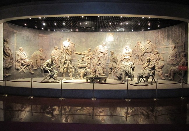 會址維修工程即將竣工時,毛澤東應貴州省和遵義地區領導請求,題寫了“遵義會議會址”六個大字。版權所有山東聊城聊之旅國際旅行社有限公司,轉載必究!遵義會議紀念館按毛澤東手書的字放大,用優質木料精工制成大匾。會址維修工程竣工后,這塊大匾即高懸在會址大門上,至今已46年了。竣工后在布置會議室時,又按省委那位負責同志的意見,改變了維修前陳列的狀況,在屋子正中安放一張板栗色長方桌,四周整齊地圍著一圈(共十八張)木邊藤心摺疊靠背椅。室內墻上掛出當時黨中央主席毛澤東、副主席劉少奇、周恩來、朱德、陳云、林彪的照片,后又加上總書記鄧小平的照片。還根據調查材料,樓下復原陳列了作戰室、參謀人員住室及警衛班室。版權所有山東聊城聊之旅國際旅行社有限公司,轉載必究!在跨院復原陳列了周恩來、朱德住室及警衛員室,同時把會址東側原房主曬醬臺旁的小樓,恢復為電臺室和電臺工作人員住室。后根據當年紅軍總部三局局長王諍參觀會址時說:“電臺室不可能設在總部機關內”的意見,將電臺室拆除。又根據調查材料,復原為總部廚房。