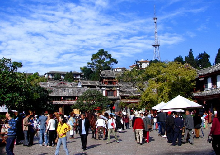 四方街在歷史上就是一個商品交易場所。麗江古城始建于宋末元初,迄今已有800余年歷史,展現著漢、納西、藏、白等各民族和諧相處的生動景觀和多元文化形態(tài)。1997年12月,麗江古城被列入《世界遺產名錄》,填補了中國世界文化遺產中無歷史文化名城的空白。在此后的10余年間,麗江古城“用保護世界遺產帶動旅游業(yè),以旅游發(fā)展反哺遺產保護的實踐經驗”被聯合國教科文組織認為是為困惑的中國乃至世界城市類型文化遺產保護面臨的共同難題探索出了全新的路子和經驗。然而,旅游業(yè)的蓬勃發(fā)展,也造成麗江原住居民大量外遷、傳統(tǒng)民族文化遭受沖擊、生態(tài)環(huán)境正在發(fā)生改變,“過度開發(fā)”、“太過商業(yè)化”的質疑也不絕于耳。盛名之下的麗江古城在保護與利用間艱難地、小心翼翼地尋求著平衡。