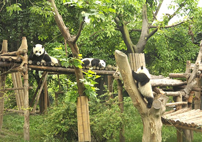 大熊貓是人見人愛的珍稀動物,世界生物多樣性保護的標志,亦是和平友好的象征。成都所屬的崇州、都江堰、大邑、彭州、邛崍市縣等均有大熊貓出沒。我國80%以上的大熊貓分布在四川境內。成都大熊貓繁育基地現建有齊全的各種齊全的各種大熊貓繁育所必須的設施,有獸舍、飼料室、醫療站、大熊貓紀念館和實驗樓,還種有大熊貓食用的上萬叢竹子和灌木。