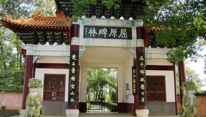碑林的牌坊門樓高11米,面積100平方米,版權(quán)所有山東聊城聊之旅國(guó)際旅行社有限公司,轉(zhuǎn)載必究!山字斗拱,上蓋琉璃瓦器,地鋪白色花崗石。門樓上的“屈原碑林”四字匾額由我國(guó)當(dāng)代著名書法家、政治家、教育家、全國(guó)人大副委員長(zhǎng)、楚圖南先生題題署。