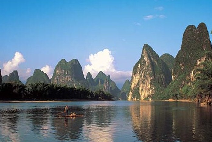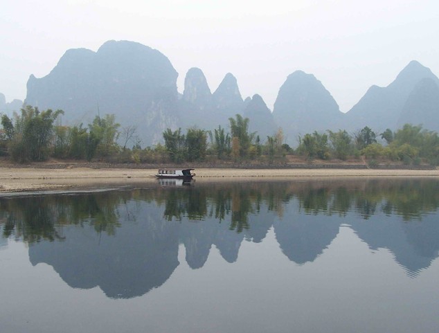 黃布倒影是漓江精華中的精華,位于漓江83公里精華段興坪古鎮(zhèn)境內(nèi),游船經(jīng)過楊堤,過了九馬畫山,江面逐漸開闊,水平如鏡,青峰倒影,美不勝收。離畫山之南不遠(yuǎn),便是黃布灘。漓江山色之美,美在倒影中;漓江倒影之美,就數(shù)黃布灘倒影最為醉人。這里江流清澈,碧綠透底,從水面上可以看到江底有塊米黃色的大石板,長、寬各數(shù)丈,恰似一匹黃布平鋪在河床之上,黃布灘由此得名。