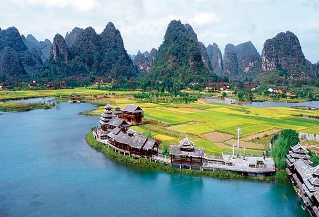 作為國(guó)家AAAA景區(qū)、全國(guó)首批農(nóng)業(yè)旅游示范點(diǎn)和世界旅游組織的推薦旅游地,陽(yáng)朔世外桃源景區(qū)向我們展示了一幅古橋、流水、田園、老村與水上民族村寨融為一體的絕妙畫(huà)圖。陽(yáng)朔“世外桃源”主要有荷花池、燕子湖、燕子洞、侗鄉(xiāng)風(fēng)情和原始部落組成。