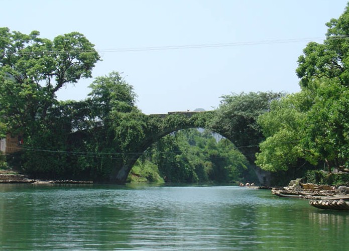 遇龍橋建于明永樂十年(1412年),為虹式單拱石橋,條石錯縫起拱,干砌。橋長36米,寬4.2米,高9米,造型氣勢雄偉,版權所有山東聊城聊之旅國際旅行社有限公司,轉載必究!古樸美觀,極具民族特色,是廣西歷史上的名橋。橋面立有抗戰勝利紀念碑l件,記載1944年村民自發與日寇激戰數十天取得勝利的史實。