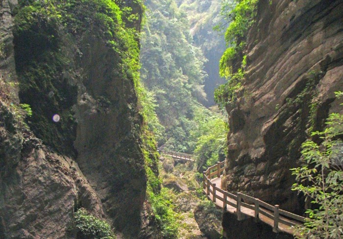 地縫狹窄、地勢(shì)險(xiǎn)峻陡峭。雨天游客出行要非常注意安全,建議避開陰雨天。
