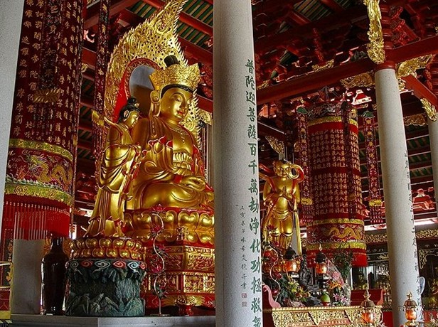 三中全會之后,宗教政策得到貫徹,該寺產權落習歸還宗教團體——潮州市佛教協會管理使用。在市佛協的帶領下,四眾熟誠鄉應,捐資修復成一座小殿堂,開展宗教動并對外開放。潮州市升格之后,該寺產權移交給湘橋區佛協會管理和使用。九三年五月林希炎、柯紫蓉居士陪同宏生大和尚來寺朝山禮圣,見松林峰氣勢宏偉,茂林沃野花果林木婆娑;寺靠山峰雄偉;雨邊山勢落脈蜿蜒環拱山門,狀似龍象守寺;寺前橫堤護基,湖泊職鏡;遠望筆架(山)、葫蘆(山)、金山、韓江濱江、鳳城璀璨,雄偉壯觀,故知昔日潮郡名人留詩詠景之不虛,詩曰:“頭枕松林峰,腳踏黃枝湖。版權所有山東聊城聊之旅國際旅行社有限公司,轉載必究!左手挽筆架,右手托葫蘆。”不愧為名勝石跡。于是發大原心擴建重興松林古寺。遂請名工程師做總體規劃設計、規劃用地共六十多畝;總建筑面積為九千五百多平方。總體建筑布局大致為五部分,中軸線為山門、金剛殿、天五殿、圓通寶殿、大雄寶殿、藏經樓;東側:東長廊、地藏殿、鐘樓、客堂、齋堂、僧舍、佛教文化中心樓、五百羅漢堂;西側:西長廊、伽藍殿、鼓樓、僧舍、念佛堂、普同塔、敬老院;山門前配套:東、西雙石塔、放生池、曲徑、涼亭、橋、牌坊、寺道,廣場配套等。