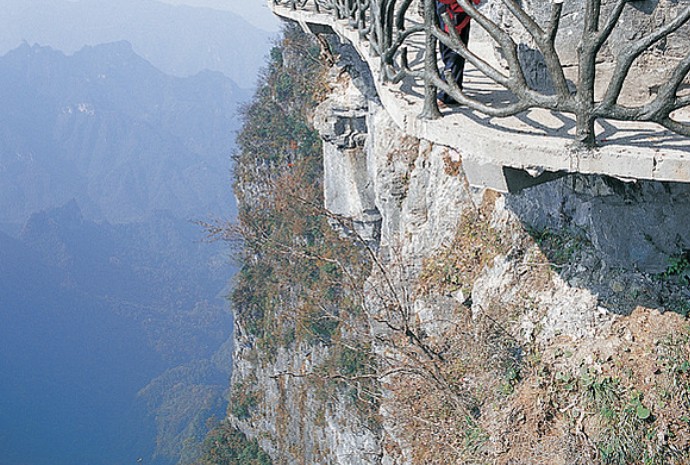 云霧天橋是由泥土和山石天然堆砌生就而成的。坐落在云霧山鬼谷嶺南麓一條山脊上,地處三天門到四天門之間。版權(quán)所有山東聊城聊之旅國際旅行社有限公司,轉(zhuǎn)載必究!這里海拔近2000米,在天際的白云中飄浮,所以稱它為云霧天橋。此橋其實就是一條短短的山脊,長約20余米,寬不足1米,僅容一人通過。