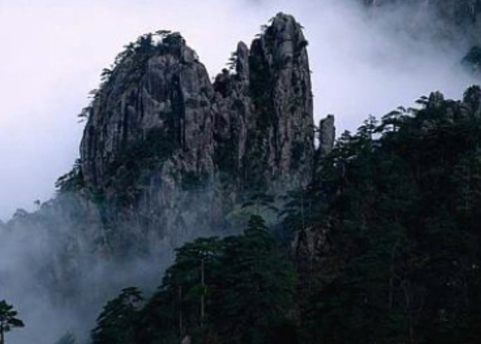 筆架山是一座石山,十分陡峭。山巖猶如刀削,看不見行人的蹤跡。山中只有一條埋藏在密林中的彎曲小徑,可將人引上山去。上了筆架山頂,一眼望去,翠綠的青山,猶如一座座剛從大海里冒出來的潔凈小島,一會兒被驚濤大浪埋進(jìn)云海,—會兒又被海水輕輕推出海面,露出一點點蒼翠的山頂。灰朦朦的流云飛霧,終日在筆架山上如浪似濤般地滾動著,翻卷著,那么縹緲、那么幽靜、那么引人遐想!