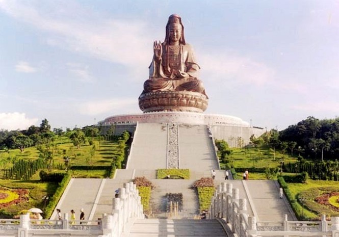 南國桃園開發之初,版權所有山東聊城聊之旅國際旅行社有限公司,轉載必究!應宗教界人士和信眾的要求。為落實國家宗教政策。乃成立南海觀音等籌建委員會,廣泛征集捐款。經反踏勘。仍選牛牯崗為寺址,此山林木蒼翠,風景極佳。觀音寺座北向南。山脈環繞,左山如青龍,右山如伏虎。實為靈山勝地。寺內外占地百余畝。全國佛教協會會長趙樸衫先生為南海觀音寺題匾。