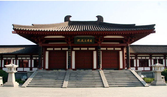 殿上供奉有玄奘法師的頂骨舍利和銅質坐像,殿內壁面布滿唐代高僧玄奘法師生平事跡巨幅壁畫,為銅刻、木雕和石雕。是當前規模最大的玄奘紀念館,供游人瞻仰參觀。聯合國教科文組來此參觀,譽玄奘三藏院為當代敦煌。