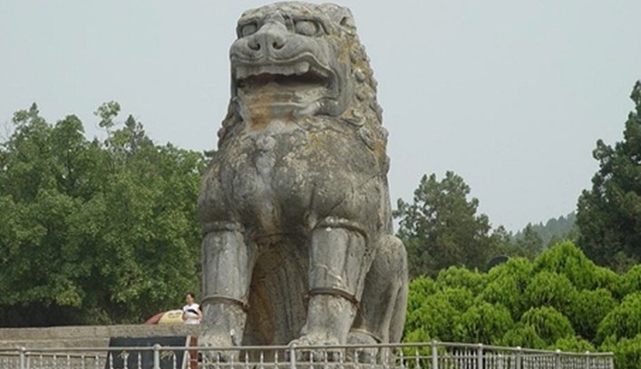 乾陵當初地面建筑 378間。東南有17座子孫兒女王公大臣陪葬墓。陵園內(nèi)現(xiàn)尚存 124件精美的大型石刻群,從南往北有八棱柱形華表1對、翼馬和朱雀各1對、石馬5對、戴冠著袍持劍中郎石人像10對,并有兩通高達 7米以上的《述圣記碑》和《無字碑》,以及參加高宗葬禮的中國少數(shù)民族首領或友好國家特使石刻像61尊。內(nèi)城四門各有石獅 1對。這些石刻,造型逼真,神態(tài)生動。