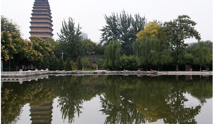 西安博物院建設(shè)過程中,一方面對原有保護區(qū)的基礎(chǔ)設(shè)施以及園林綠化進行了全面的改造,另一方面在原有占地面積的基礎(chǔ)上沿小雁塔、薦福寺的中軸線向東西兩側(cè)進行了擴展,改善了小雁塔與薦福寺的周邊環(huán)境。在擴建的區(qū)域內(nèi),增加了人工湖面以及園林綠化景觀,使歷史名勝與城市公園融為一體,成為一處集文物鑒賞、旅游觀光、休閑娛樂為一身,多功能的城市景觀區(qū)域。