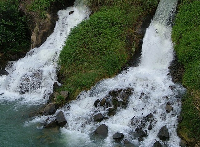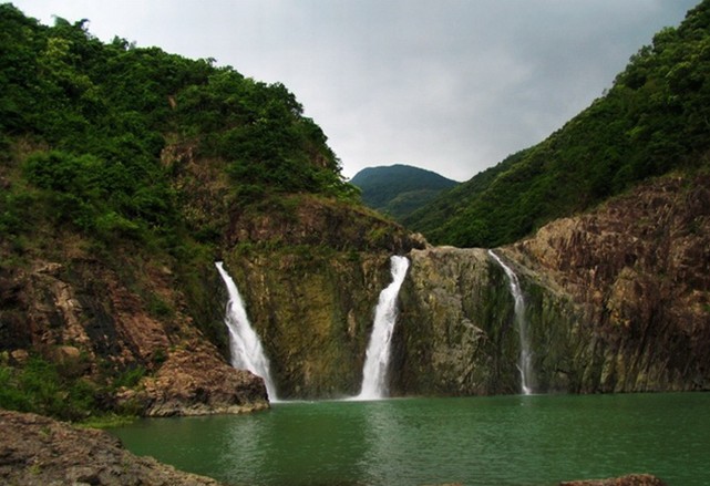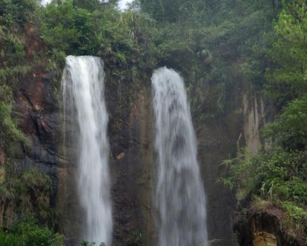 根據資料記載,鳳南瀑布水盛之時,飛流直下,噴珠濺玉,極為壯觀。但是也就是因為這樣的大落差大流水量,吸引了水利工作者在這里修建了水電站,所以現在我們看到的鳳南瀑布,其實已經是經過人工改造過的非天然瀑布,因為要利用落差發電,一道瀑布被水閘分成了三道,遠遠看去,仿佛九龍盆邊上三條白龍,在周遭的綠意中顯得格外醒目。