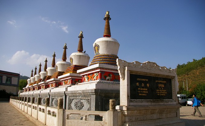 大拉浪由經堂、華門、牌坊3座殿堂組成,為漢藏合璧式建筑,是塔爾寺總法臺的居住處,達賴、班禪曾駐蹕于此。居巴扎倉(密宗學院)系藏式平頂建筑。曼巴扎倉、丁科扎倉屬漢藏結合建筑。寶塔數十座,其中并列于寺前的8座如意寶塔,方座,瓶形塔身,尖頂,根據釋迦牟尼一生重要經歷和傳說建成。 最后終于有了塔爾寺。