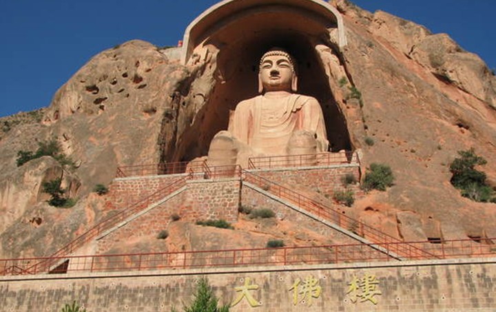 最為引人注目的,是須彌山入口處高達(dá)20.6米的彌勒大座佛。它高坐于唐代大中三年(849年)開鑿的一個(gè)馬蹄形石窟內(nèi),身披袈裟,頭流螺髻;臉如滿月,雙耳垂肩,神情莊重,十分壯觀。這座大佛比云崗石窟中最大的十九窟坐佛和龍門石窟的奉先寺盧舍那佛還高,是全國(guó)最大的造像之一。走近觀察,只見(jiàn)那佛高大魁梧,足有五六層樓高,耳朵有兩人高,眼窩直徑1米多,佛雖大,但雕刻卻十分的精致。專家說(shuō),這完全是一塊完整的罕見(jiàn)巨石雕琢出來(lái)的,充分顯示了中國(guó)古代工匠的高超技藝和雄偉氣魄。唐代統(tǒng)治者提倡佛教,武則天曾下令全國(guó)各州建大佛寺,造大佛像。有學(xué)者推測(cè),這等大佛可能是在武則天掀起的崇拜佛的浪潮中建造的。站在大佛的腳下,眼前似有云霧繚繞,耳旁隱聽山泉叮咚,山石霧松組成大西北黃土高原上獨(dú)特的山水畫卷