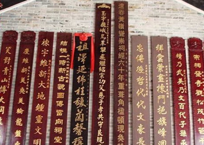大宗祠的基地是龜形,版權所有山東聊城聊之旅國際旅行社有限公司,轉載必究!有頭、有手、有足、有尾,祠前三級水,六脈入村懷,祠堂正對著黃旗山的尖峰,因此祠的門聯寫著“門對旗峰百代孝慈高仰止,祠環潢水千年支派永流長”,聯是翰林學士黎溢海撰的。
