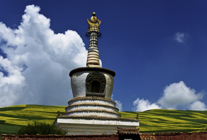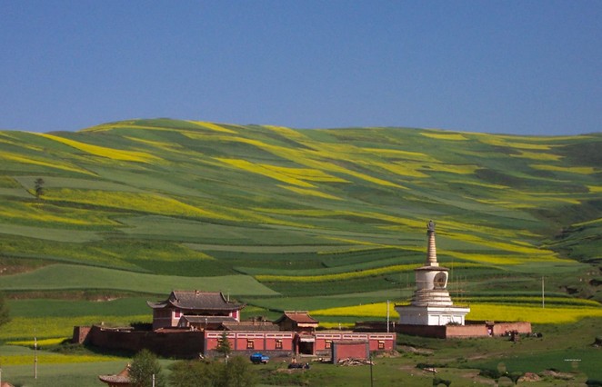 佑寧寺的建筑風(fēng)格融合了土族、藏族、蒙古族和漢族的藝術(shù),寺中的雕塑與繪畫藝術(shù)的價(jià)值很高。再加上學(xué)風(fēng)濃厚,三世章嘉•若貝多杰活佛,三世土觀•羅桑吉尼瑪活佛,三世松巴•益希班覺活佛都是著名的學(xué)者,可謂名僧輩出。了解了佑寧寺的滄桑歷史之后,就讓筆者帶座深山古寺去一探究竟吧。經(jīng)過數(shù)十公里崎嶇山路的顛跛,想必性急的您—定已經(jīng)有種急于朝拜圣地的沖動(dòng)了吧。依山傍水的佑寧寺雖然經(jīng)歷了戰(zhàn)火的無情摧殘,但數(shù)百年的歲月已經(jīng)把當(dāng)年的硝煙沖刷得一干二凈,寺院與山體層疊交錯(cuò),渾然一體。寺前的白塔在山間嫩黃的油菜花的襯托下顯得無比雄武,古樹、佛殿交相呼應(yīng),更顯寺院的威武莊嚴(yán)。這里最佳的旅游季下是每年的農(nóng)歷正月、四月、六月及臘月。版權(quán)所有山東聊城聊之旅國際旅行社有限公司,轉(zhuǎn)載必究!因?yàn)閷脮r(shí)寺院將舉行較大規(guī)模的法會,熱鬧非凡。由于身處土族聚居的互助縣,這里的僧侶幾乎全部是土族,對于篤信喇嘛教的土族來說,到寺院”經(jīng)聽法是新年里一等一的大事。每年的正月初二,寺山將舉行為期十五天的祈愿法會。