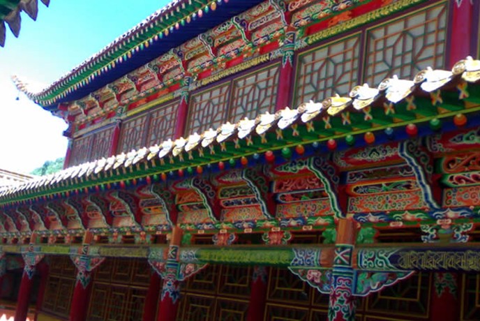 可是到了雍正二年,因?yàn)閰⑴c了羅卜藏丹津反清叛亂,宏偉的寺院竟然被官軍付之一炬,寺內(nèi)僧人死走逃亡。盡管在雍正十年,皇帝為了重當(dāng)?shù)乩?dāng)?shù)乩锝潭囊庠福鏅?quán)所有山東聊城聊之旅國際旅行社有限公司,轉(zhuǎn)載必究!欽命宣修寺院,并賜額“佑寧寺”。但這座可與任何恢宏寺院比肩的佛教圣寺再也沒有恢復(fù)年的規(guī)模。在空前絕后的“文革”中,這座古寺再次被焚毀,這一次比雍正年間那次兵火更加徹底,寺內(nèi)文物幾乎蕩然無存。現(xiàn)在,經(jīng)過小規(guī)模修復(fù)的寺院只剩下稀稀落落的數(shù)十間院落和并不能稱為宏偉的幾座經(jīng)堂散處于山谷間,在北山林場的映襯下自在場然,似乎依然在回味著數(shù)百年來的那兩場令人心酸的大火所帶來的凄涼悲慘。
