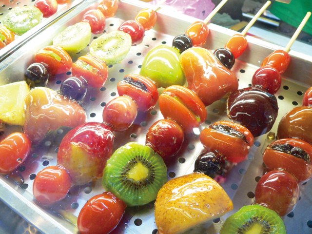 以平價且真材實料的日式小吃打動當(dāng)?shù)厝说男模?ldquo;起士洋芋”以進口的美國馬鈴薯搭配豐富的配料和濃濃的起士,熱騰騰的美味要在逢甲夜市才吃得到;“阿伯特制冰淇淋”擁有許多低脂、低糖、低熱量口味的香草冰淇淋、巧克力綜合冰淇淋、巧克力冰淇淋、芒果冰淇淋、草芒綜合冰淇淋、草莓冰淇淋,十分香濃好吃;“現(xiàn)壓金桔檸檬”以檸檬、愛玉、山粉圓、仙草四合一的口味,擄獲民眾的心,在夏日來上一杯更是享受;“可麗餅”香脆的外皮、豐富的配料、多樣的口味,成為逢甲夜市的招牌美味。