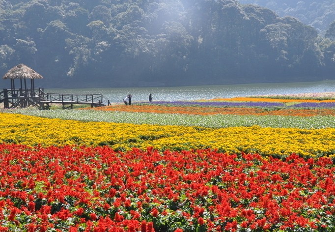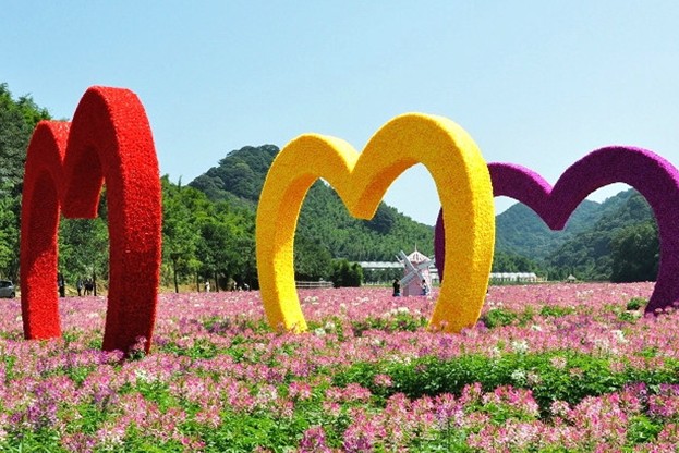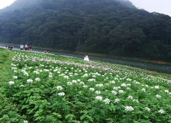 海拔800多米的石灶天池之畔,每年不同時候都會種植大面積的高山花卉,因此被稱為“天池花海”。金黃的油菜花、搖曳的大波斯菊、神秘的醉蝶花,倒映在碧綠的湖水中,與華南地區保存最完好的的原始次生林隔岸相望。新人執手花間,戲水湖畔,讓碧水和青山見證他們的愛情。“天池花海”最近的花卉主題是“五色花海”和“醉蝶花海”,在每年9月下旬至11月中旬推出,相信會吸引更多新人。