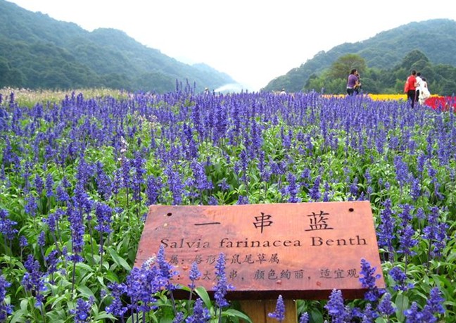 這里沒有窒息的空氣,沒有呆板的布景,只有自由的山風吹動婚紗飄動,只有靈動的光影定格愛情的永恒。花海、紅葉、青山、碧湖、竹林、溪流、棧道、幽谷,每一處景點都可成為最美的拍攝背景。在7月,最讓新人流連的是“天池花海”的美景。