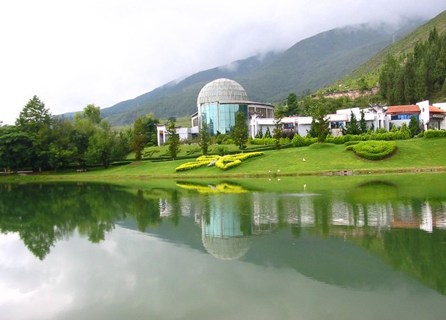 南詔行宮,是島上的主體建筑,是南詔王避暑行宮的縮稱,南詔行宮是仿古皇宮而建,由于當時的南詔王朝深受吐蕃文化和唐文化的影響,所以行宮采用的是“唐朝的屋頂、吐蕃的墻和窗、大理的民房建筑的基礎和外形色彩”。