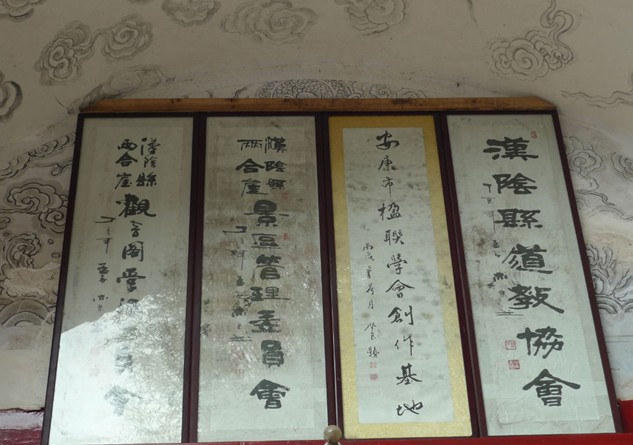 循山而上,廟依山崖,飛檐層疊。沿樵夫小徑通往山腰,只見一片翠綠,嬌艷欲滴,環(huán)抱遍野山菊,相應(yīng)成輝,妙趣天成。坐“陶然亭”小憩,細(xì)細(xì)體味著隱士陶淵明“采菊東籬下,悠然見南山”的怡然自得。亭壁“六龍馭穹蒼,文星射斗牛”的楹聯(lián),激揚(yáng)文字,豪情沖天,彰顯藏龍臥虎的磅礴氣勢(shì)。