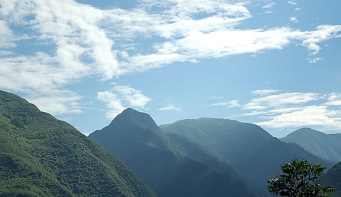石泉段的漢江進入峽谷區,最窄處如蓮花古渡只有50米,兩岸山峰對峙,高出河面300米以上,谷坡50~60度,在石灰巖區域尤其峻峭,形成了3個著名的峽谷:鳳凰峽、柳溪峽和香柏峽,全長35公里。這里漢水如玉如綢、似鍛似錦,兩岸翠山碧峰、青瓦白墻,江上漁歌唱晚,一派江南水鄉的景象,素有"秦巴山水畫廊"之美譽。
