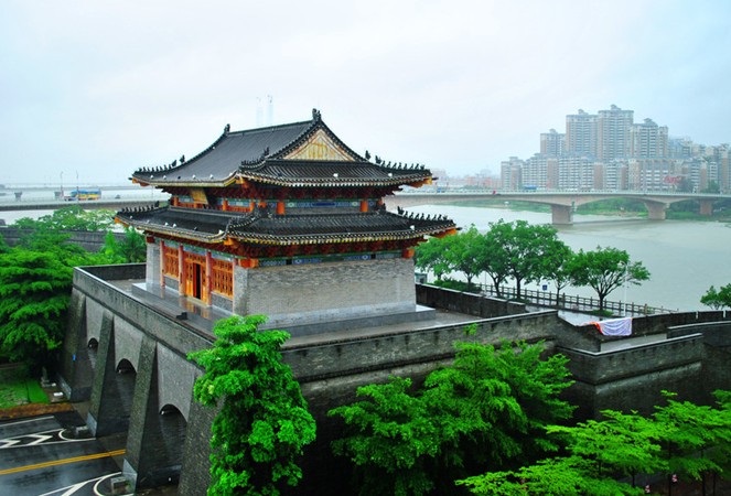 朝京門是具有擋水百年洪水功能的仿古城墻,將旱閘建設成為仿古城樓,城樓的城門內安裝人字形閘門,平時閘門敞開,作為交通通道,當汛期需防洪擋水時便關閉閘門。該工程總長352米,其中城樓面積1006平方米,設有3孔拱形門洞,門洞寬分別為中孔8.1米,邊孔7.2米,城樓高21.865米,版權所有山東聊城聊之旅國際旅行社有限公司,轉載必究!工程總投資約1600萬元。惠州原老城墻為明代古城墻,是惠州遺留下來的重要歷史文物。歷經六百多年的風雨滄桑,作為惠州大堤南堤的一部分,老城墻已不能滿足防御百年一遇洪水的標準,亟待加固。朝京門城樓和城墻工程是惠州大堤南堤安全加固工程的其中一段,也是該市北門公園的重要組成部分。惠州大堤南堤安全加固工程于1998年經省發展改革委員會批準立項,并于當年開工建設,加固堤圍全長22.61公里。