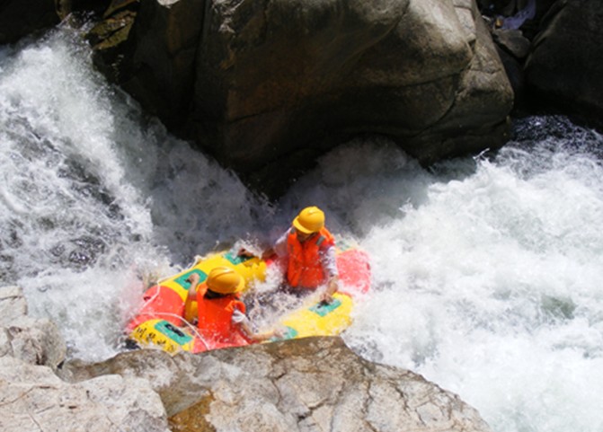 下險灘、飛越激浪,有驚無險;過深潭、追波逐浪,聽鳥觀魚。身臨其境既可領略旖旎 的自然風光,又可擁抱大自然的無限樂趣。山在霧中,人在畫中,恰似一幅情趣盎然的精品畫。在激流的撞擊下,橡皮艇如離弦之箭,向前沖刺。險灘、礁石撲面而來,幾乎要把橡皮艇掀翻,卻有驚無險。橡皮艇又義無反顧地駛入平緩的水潭中慢條斯理地蕩漾。心靈深處得到一次酣暢淋漓的釋放。
