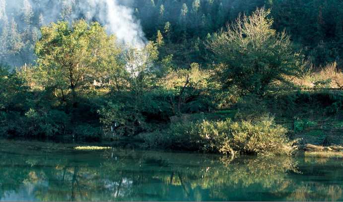 大山村有王村、李村和洪村三個村民組,其中王村所在的地方尤為奇特,他們倚山結廬,世代以種茶為生。村口一棵甜櫧,680年,蔥蘢如蓋。村子四面環山,像安臥在搖床里的嬰兒。東南面有一叢古樹,天然一處入風口,光線也通透,遠處層巒疊嶂,云霧常年繚繞,而西北面則有一個天然的出風口,我們先前感受到的暖流氣息,很可能就是從這個出口散出去的。