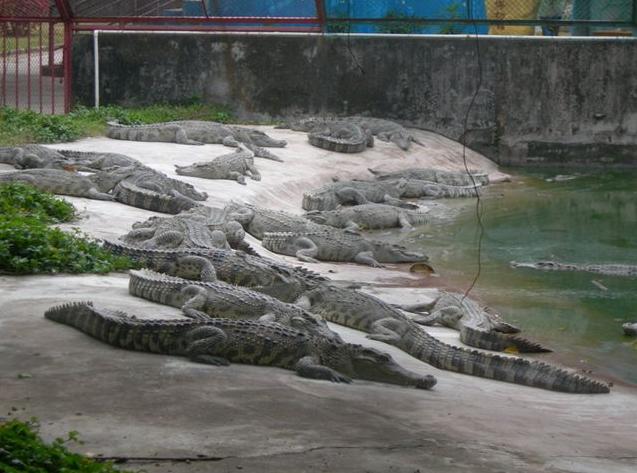 島那金碧輝煌,巍峨壯麗的泰式門樓,門前寬廣的停車場可一次性停放上百輛大巴,進入大門后,有一個十分醒目、高達4米的大型鱷魚雕像——“鱷魚一家”吸收不少游客紛紛在此攝影留念,離雕像百米處,十多個鱷魚池座落在鮮花叢中、綠茵地上、池中養有我們祖先稱為“噴火龍”、“鮫龍”的楊子鱷、泰國灣鱷、馬來鱷、雜交鱷等四個品種,大小近千條,最小的有剛出殼的幼鱷,體型最大的有4米多長,重達千斤。此外還養有一批鴕鳥、狗熊、孔雀、猴子、大蟒蛇、駱駝、驃頭大馬供游人觀賞、合照,大仿古大炮、踏水車、水上單車等有獎娛樂項目供游人玩樂。