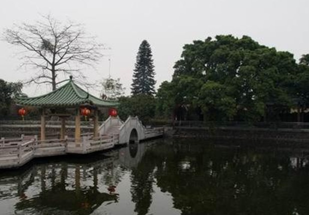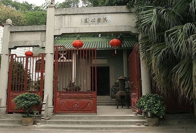 明代建筑,原為天后廟,由于潮連四面環海,為保海上出入平安,鄉人立神廟供奉天后娘娘,后改名為洪圣殿。1984年擴建為公園,現有洪圣殿、慈母亭、四眼井等古跡。逢天后誕,前來供奉之游人不絕。