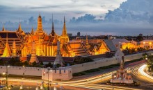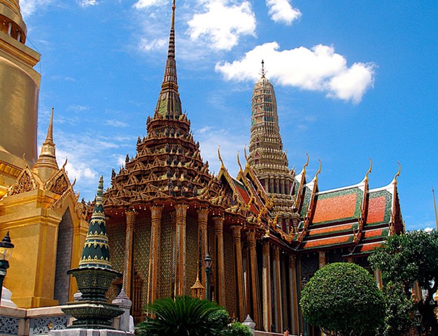大皇宮(The Grand Palace)緊鄰湄南河,是曼谷中心內一處大規模古建筑群(計28座),總面積二十一萬八千四百平方米。大皇宮是仿照故都大城的舊皇宮建造的,經歷代君王不斷擴建,終于建成現在這座規模宏大的大皇宮建筑群。大皇宮是泰國諸多王宮之一,是歷代王宮保存最完美、規模最大、最有民族特色的王宮。曼谷王朝從拉瑪一世到拉瑪八世,均居于大皇宮內。1946年拉瑪八世在宮中被刺之后,拉瑪九世便搬至大皇宮東面新建的集拉達宮居住。現在,大皇宮除了用于舉行加冕典禮、宮廷慶祝等儀式和活動外,平時對外開放,成為泰國著名的游覽場所。