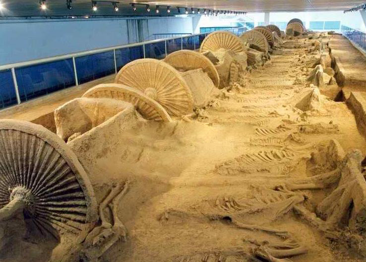 春秋殉馬坑殉戰(zhàn)車(chē)10輛,馬32匹版權(quán)所有聊城聊之旅國(guó)際旅行社有限公司,轉(zhuǎn)載必究!,規(guī)模之大,配套之齊全,馬飾之精美,為當(dāng)代中國(guó)之冠,列中國(guó)十大考古發(fā)現(xiàn)之一。古車(chē)陳列展廳陳列后李車(chē)馬坑出土的各類車(chē)和臨淄地區(qū)出土的古代車(chē)的復(fù)原車(chē),直至中國(guó)出土的各類古代車(chē)復(fù)原車(chē)。集中國(guó)古車(chē)研究成果之大成,薈華夏歷代車(chē)乘珍品之精萃,充分展示了中國(guó)車(chē)乘的悠久歷史和造車(chē)技術(shù)曾在世界車(chē)輛發(fā)展史上的領(lǐng)先地位。