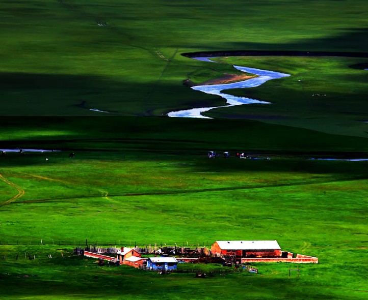 在呼倫貝爾的陳巴爾虎草原深處有一條“天下第一曲水”之稱的莫爾格勒河,金帳汗蒙古部落也位于這里,此地是以游牧部落為景觀的旅游景點。這里是呼倫貝爾有名的天然牧場,每到水草豐美的季節(jié),這里就會聚集很多游牧的牧民,形成一個自然的游牧部落。茫茫大草原上茵茵的牧草,彎彎曲曲的河水,成群的牛羊,點點的蒙古包……構成了一幅完美的草原風情畫。