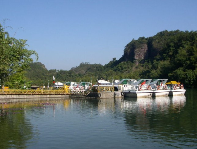 九瀧十八灘為全國首辟漂流旅游點.每天八時正,旅游者從坪石鎮金雞嶺腳乘坐橡皮舟,順流而下,時而掠驚濤駭浪于人前腦后,時而置輕舟于青山綠水之間,有張有弛,其樂無窮。 漂流所有的是橡皮艇,碰到礁石會反彈,一般不會撞破,如撞破了也沒有關系,因為橡皮艇內有6個氣室,那怕撞破2、3個仍能繼續漂流。每艘橡皮艇可載6至10人,由專人負責掌舵。漂流的河段選得很好。開始的一段,水流較緩,約一個小時后,進入一段狹窄的河道,水流湍急,小艇隨著激流的撞波破浪而下,有時翻進漩渦里,有時穿過亂石堆,在波浪中拋上跌下。艇里人衣褲盡濕,并要緊緊抓住艇邊的安全索,以防被拋出艇外,相當驚險,漂流的樂趣和吸引力也正在這兒。闖過若干個險瀧后,水流就慢慢緩和下來。這時,放眼看去,就會發現兩岸景色優美,有"十里畫廊"之稱,漂流也接近終點了。