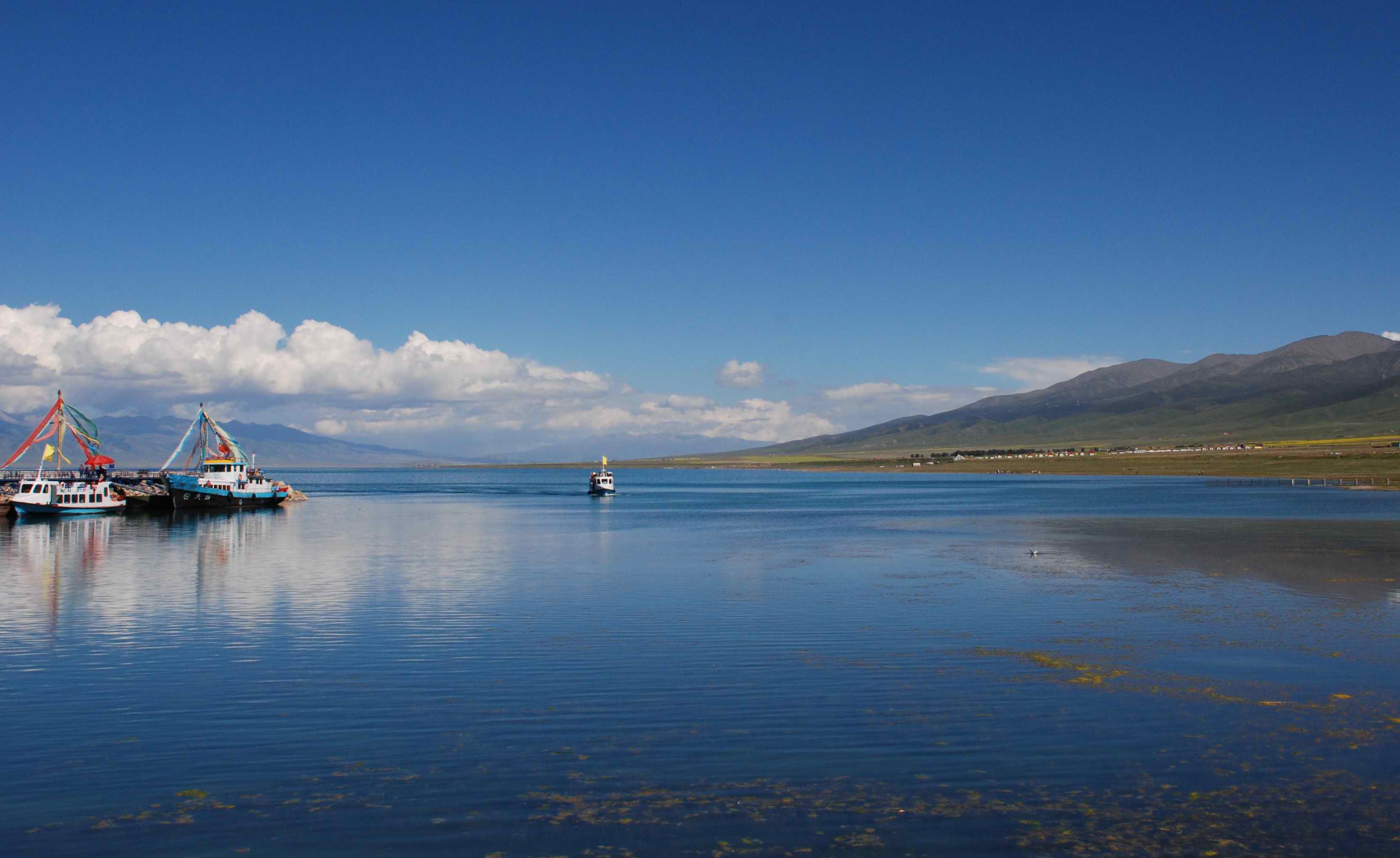 2006年10月25日,由中國國家地理雜志社為青海湖頒發(fā)了“中國最美的五大湖”證書和獎(jiǎng)牌。煙波浩淼、碧波連天的青海湖就像一盞巨大的翡翠玉盤,鑲嵌在青藏高原東北部的高山、草原間,構(gòu)成了一幅群山、湖水、草原相映成趣的壯美風(fēng)光和綺麗景色。青海湖擁有4300平方公里的遼闊水域,天水之間水鳥翔集,藍(lán)天白云和湖光山色相互輝映。