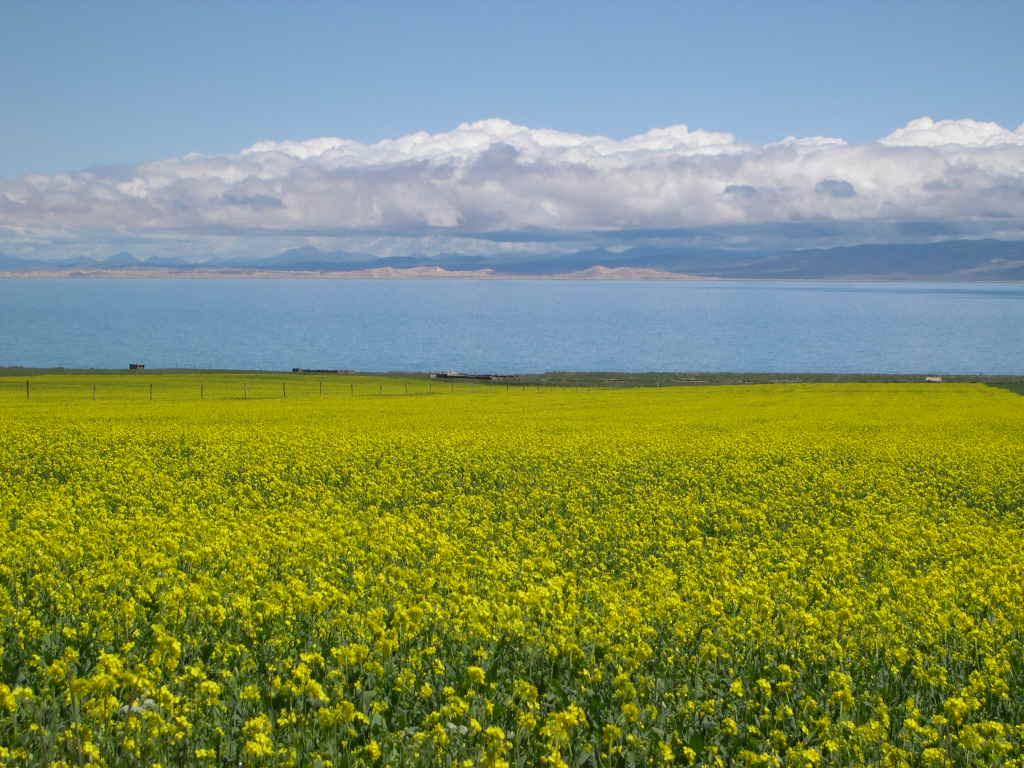 三、7~8月的青海湖邊將不但盛開大片的油菜花,而且黃色的花海和一望無際的藍(lán)色湖水相配襯,景色絕佳。青海湖邊是游人最好的扎營地,那時(shí)的氣溫不過18℃左右,氣候涼爽宜人。
