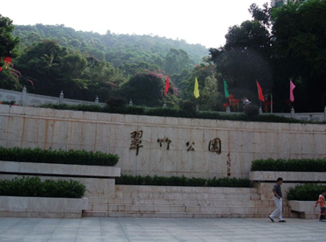 翠竹公園位于深圳市羅湖區翠竹路1078號,北臨太寧路,西、南分別與翠竹路、東門路接壤,東臨水庫新村等生活區。總面積45.13公頃。整個公園以山地丘陵為主,多山頭,坡勢較陡。最高峰位于公園南部,海拔153.24米。