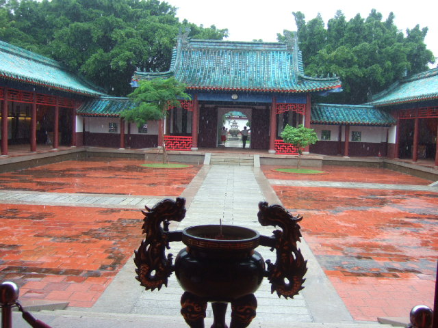 延平郡王祠,又名開山王廟或鄭成功廟,位于臺灣臺南市中西區(qū)(清代臺灣府城油行尾街),為清治時期最早的官祀鄭成功紀念祠,其前身為民間所建的開山王廟,臺灣日治時期曾改名為開山神社。但現(xiàn)今樣貌實為1963年動工改建的結果,所以該廟長久以來未被列為古跡,直至010年將延平郡王祠(含鄭成功文物館)登錄為臺南市第九座歷史建筑。