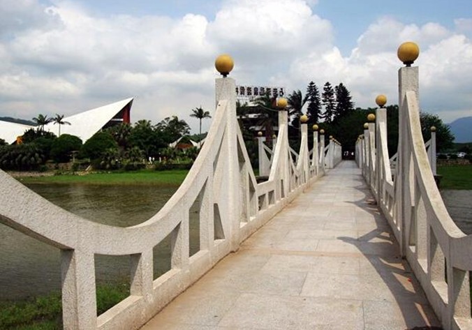 石巖湖溫泉度假村古樸典雅的西班牙建筑群綿延如帶,各種抽象派雕塑點綴其間,茂密的熱帶植物下掩映著一條條綠色小徑;清秀挺拔的“仙鏡”山迎著石巖湖飄然而立,攀上頂峰,不但能全覽石巖湖如詩如畫的仙境,更能體會到大山的豪邁與堅強;“情人島”三面環水,島上悉尼歌劇院風格的建筑會讓人領略到異國的風情,閑暇時,牽著情人的手,踏過情人橋在情人島上漫步,那份浪漫將會令人終生難忘!還有規模宏大的拜佛圣地一弘源持,它是深圳市仙湖植物園弘發寺的姐妹廟。