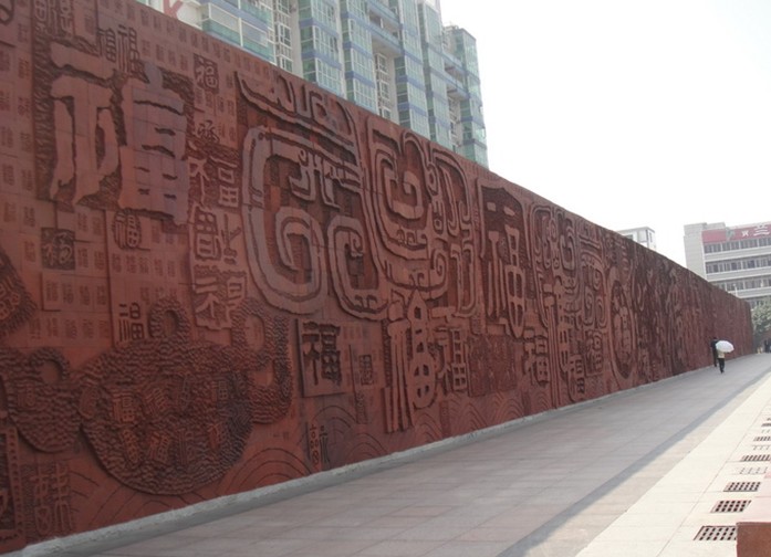 萬福廣場位于深圳市寶安區福永鎮,這里有屹立在萬福廣場的萬福壁,已經成為深圳的一大景點,引來眾多游人前往觸摸壁上各種寫法的福字以求沾染福氣。1999年落成的萬福壁長130米,高5.67米,厚達10多厘米,矗立在福永鎮的中心廣場。萬福壁采用紅色紫砂陶高溫燒制而成,整個浮雕由8833塊紫砂陶拼制而成,重約11萬公斤,收集了從最早的象形文字到鐘鼎文、草、隸、篆等字型的“福”字1萬多個。