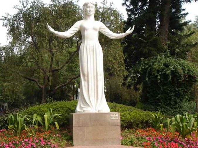 深圳市東湖公園“一號門景區”是游客較為集中的景區,有大門牌坊、廣場、浮雕、噴水池等園林建筑;有紅荔書畫館、露天劇場等文化設施;也有東湖旱地雪橇、趣味動物苑、兒童游樂場等游樂設施。景區中心是一尊全高5米,名為《歡迎》的雕像,一位修竹一般素靜美麗的姑娘,正伸開雙臂迎接八方賓客,山山水水的天然韻致,自然而然地流動于其間了,這是中央美術學院教授法籍華人王合內女士的力作。