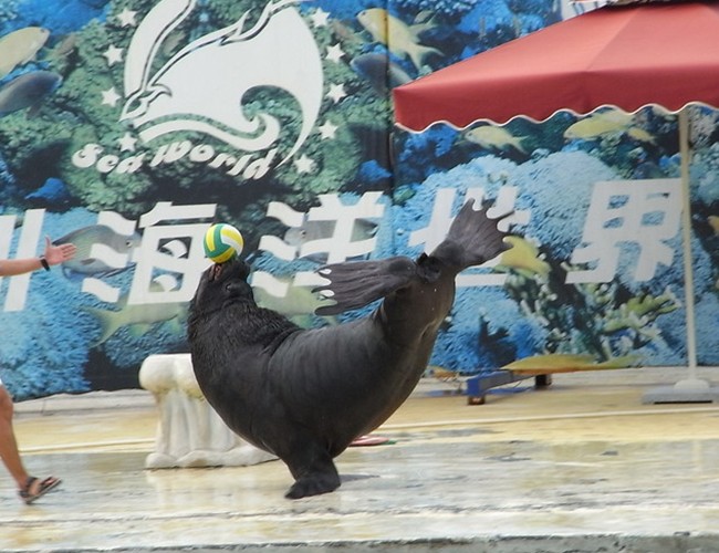 海洋劇場:設有近3000個座位,現有6只海豚、8只海獅、6只海豹。每天三輪、近1個小時的海洋劇場大表演,俄羅斯勇士帶來極限高空跳水特技,烏克蘭美少女演繹激情水上芭蕾,國際小丑帶來爆笑嬉水節目,還有海洋動物明星海豚、海獅、海豹的精彩表演,場場表演贏得觀眾近100次歡呼喝彩和興奮的掌聲!